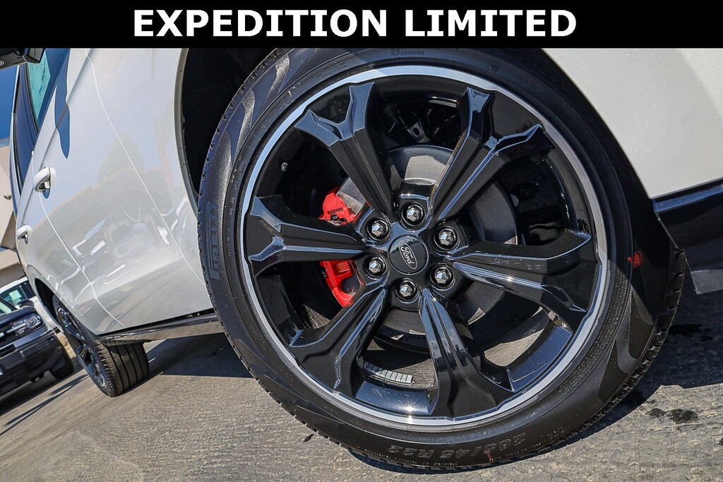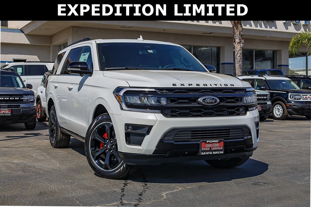 Star White Metallic Tri-Coat 2024 Ford Expedition Limited RWD 10-Speed Automatic 3.5L V6 12 Speakers, 3.31 Axle Ratio, 3rd row seats: split-bench, 4-Wheel Disc Brakes, ABS brakes, Adjustable pedals, Air Conditioning, Alloy wheels, AM/FM radio: SiriusXM with 360L, Auto High-beam Headlights, Auto-dimming door mirrors, Auto-dimming Rear-View mirror, Automatic temperature control, Brake assist, Bumpers: body-color, Compass, Delay-off headlights, Driver door bin, Driver vanity mirror, Dual front impact airbags, Dual front side impact airbags, Electronic Stability Control, Emergency communication system: SYNC 4 911 Assist, Exterior Parking Camera Rear, Four wheel independent suspension, Front anti-roll bar, Front Bucket Seats, Front Center Armrest, Front dual zone A/C, Front fog lights, Front reading lights, Fully automatic headlights, Garage door transmitter, Heated & Ventilated Leather Front Captain's Chairs, Heated door mirrors, Heated front seats, Heated rear seats, Heated steering wheel, Illuminated entry, Leather steering wheel, Low tire pressure warning, Memory seat, Navigation system: Connected Navigation, Occupant sensing airbag, Outside temperature display, Overhead airbag, Overhead console, Panic alarm, Passenger door bin, Passenger vanity mirror, Pedal memory, Power door mirrors, Power driver seat, Power Liftgate, Power moonroof, Power passenger seat, Power steering, Power windows, Radio data system, Radio: B&O Sound System by Bang & Olufsen, Rain sensing wipers, Rear air conditioning, Rear anti-roll bar, Rear reading lights, Rear window defroster, Rear window wiper, Reclining 3rd row seat, Remote keyless entry, Security system, SiriusXM w/360L, Speed control, Speed-sensing steering, Speed-Sensitive Wipers, Split folding rear seat, Spoiler, Steering wheel memory, Steering wheel mounted audio controls, SYNC 4 w/Enhanced Voice Recognition, Tachometer, Telescoping steering wheel, Tilt steering wheel, Traction control, Trip computer, Turn signal indicator mirrors, Variably intermittent wipers, Ventilated front seats, Voltmeter, Wheels: 20" Bright Machined Aluminum.