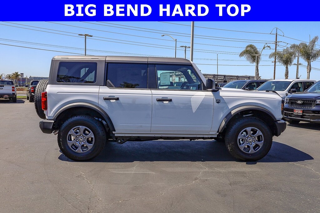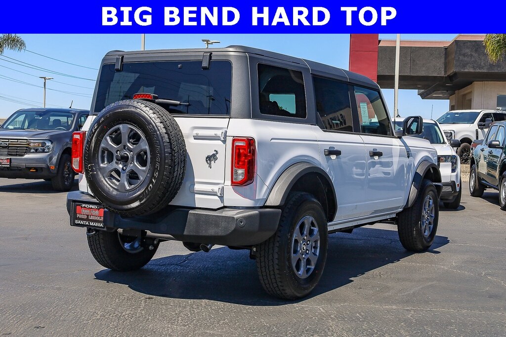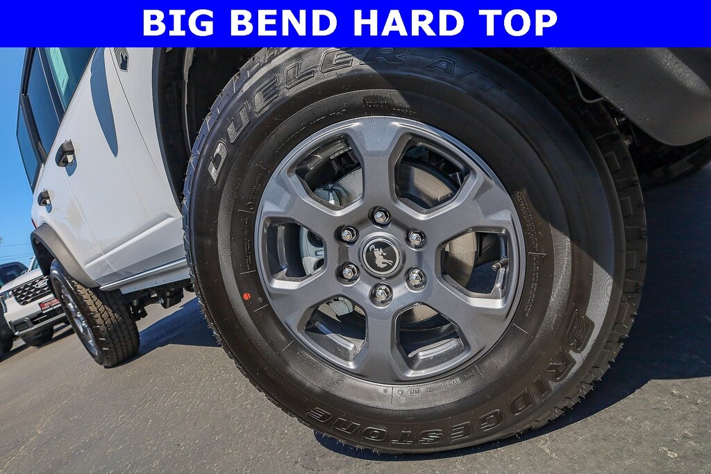 Oxford White 2025 Ford Bronco Big Bend 4WD 10-Speed Automatic 2.3L EcoBoost I-4 4-Wheel Disc Brakes, 4.46 Axle Ratio, 7 Speakers, ABS brakes, Air Conditioning, Alloy wheels, AM/FM radio: SiriusXM with 360L, AM/FM Stereo, Auto High-beam Headlights, Brake assist, Cloth Bucket Seats, Compass, Connected Navigation, Delay-off headlights, Driver door bin, Driver vanity mirror, Dual front impact airbags, Dual front side impact airbags, Electronic Stability Control, Emergency communication system: 911 Assist, Exterior Parking Camera Rear, Front anti-roll bar, Front Bucket Seats, Front Center Armrest, Front reading lights, Front wheel independent suspension, Fully automatic headlights, Heated door mirrors, Illuminated entry, Integrated roll-over protection, Leather Shift Knob, Low tire pressure warning, Occupant sensing airbag, Outside temperature display, Overhead airbag, Overhead console, Panic alarm, Passenger door bin, Passenger vanity mirror, Power door mirrors, Power steering, Power windows, Radio data system, Remote keyless entry, Security system, SiriusXM w/360L, Speed control, Split folding rear seat, Steering wheel mounted audio controls, SYNC 4, Tachometer, Telescoping steering wheel, Tilt steering wheel, Traction control, Trip computer, Variably intermittent wipers, Wheels: 17" Carbonized Gray-Painted Aluminum.