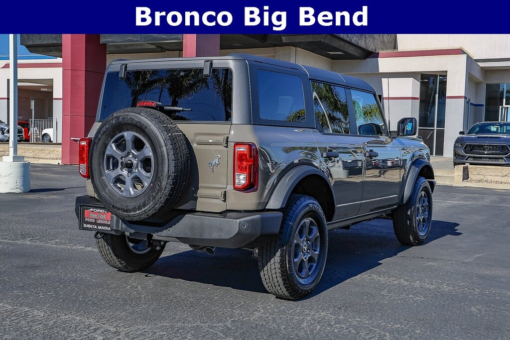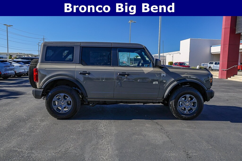 Marsh Gray 2025 Ford Bronco Big Bend 4WD 10-Speed Automatic 2.3L EcoBoost I-4 4-Wheel Disc Brakes, 4.46 Axle Ratio, 7 Speakers, ABS brakes, Air Conditioning, Alloy wheels, AM/FM radio: SiriusXM with 360L, AM/FM Stereo, Auto High-beam Headlights, Brake assist, Cloth Bucket Seats, Compass, Delay-off headlights, Driver door bin, Driver vanity mirror, Dual front impact airbags, Dual front side impact airbags, Electronic Stability Control, Emergency communication system: 911 Assist, Exterior Parking Camera Rear, Front anti-roll bar, Front Bucket Seats, Front Center Armrest, Front reading lights, Front wheel independent suspension, Fully automatic headlights, Heated door mirrors, Illuminated entry, Integrated roll-over protection, Leather Shift Knob, Low tire pressure warning, Occupant sensing airbag, Outside temperature display, Overhead airbag, Overhead console, Panic alarm, Passenger door bin, Passenger vanity mirror, Power door mirrors, Power steering, Power windows, Radio data system, Remote keyless entry, Security system, SiriusXM w/360L, Speed control, Split folding rear seat, Steering wheel mounted audio controls, SYNC 4, Tachometer, Telescoping steering wheel, Tilt steering wheel, Traction control, Trip computer, Variably intermittent wipers, Wheels: 17" Carbonized Gray-Painted Aluminum.