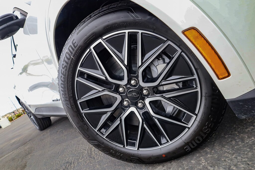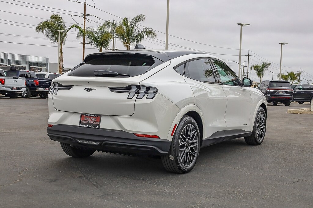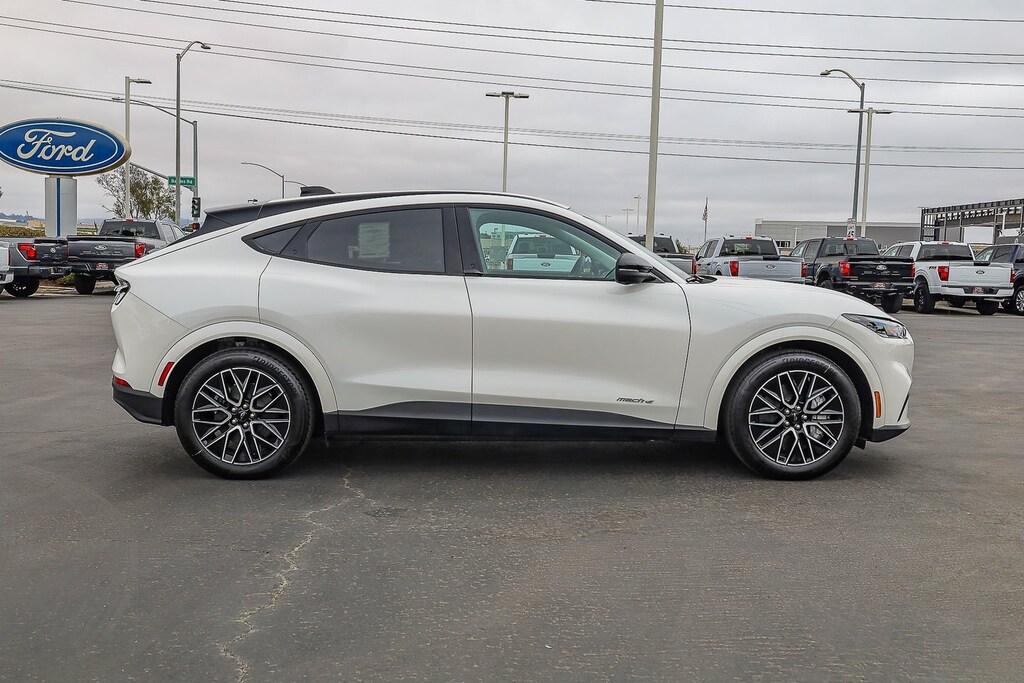 Star White Metallic Tri-Coat 2025 Ford Mustang Mach-E Premium RWD Single-Speed Automatic Electric Motor 106/98 City/Highway MPG 10 Speakers, 4-Wheel Disc Brakes, ABS brakes, Air Conditioning, Alloy wheels, AM/FM radio: SiriusXM with 360L, Apple CarPlay/Android Auto, Auto High-beam Headlights, Auto-dimming Rear-View mirror, Automatic temperature control, Brake assist, Bumpers: body-color, Compass, Delay-off headlights, Driver door bin, Driver vanity mirror, Dual front impact airbags, Dual front side impact airbags, Electronic Stability Control, Emergency communication system: 911 Assist, Exterior Parking Camera Rear, Four wheel independent suspension, Front anti-roll bar, Front Bucket Seats, Front Center Armrest, Front dual zone A/C, Front reading lights, Fully automatic headlights, Garage door transmitter, Heated door mirrors, Heated front seats, Heated steering wheel, Heated/Ventilated Perforated ActiveX Bucket Seats, Illuminated entry, Knee airbag, Low tire pressure warning, Memory seat, Navigation system: Connected Navigation, Occupant sensing airbag, Outside temperature display, Overhead airbag, Overhead console, Panic alarm, Passenger door bin, Passenger vanity mirror, Power door mirrors, Power driver seat, Power Liftgate, Power passenger seat, Power steering, Power windows, Radio data system, Radio: B&O Sound System by Bang & Olufsen, Rain sensing wipers, Rear anti-roll bar, Rear seat center armrest, Rear side impact airbag, Rear window defroster, Rear window wiper, Remote keyless entry, Security system, SiriusXM w/360L, Speed control, Speed-sensing steering, Speed-Sensitive Wipers, Split folding rear seat, Spoiler, Steering wheel mounted audio controls, SYNC 4A w/Enhanced Voice Recognition, Telescoping steering wheel, Tilt steering wheel, Traction control, Trip computer, Turn signal indicator mirrors, Variably intermittent wipers, Ventilated front seats, Wheels: 19" Bright Machined-Face Aluminum.