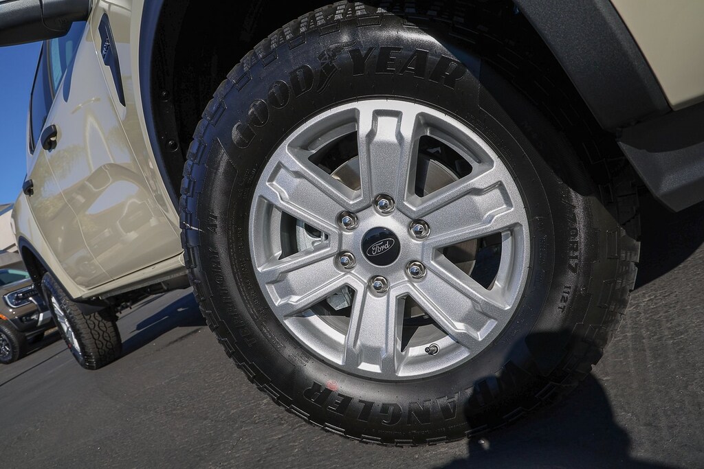 Desert Sand 2025 Ford Ranger XL RWD 10-Speed Automatic EcoBoost 2.3L I4 GTDi DOHC Turbocharged VCT 3.73 Axle Ratio, 4-Wheel Disc Brakes, 6 Speakers, ABS brakes, Air Conditioning, Alloy wheels, AM/FM radio, AM/FM Stereo, Auto High-beam Headlights, Brake assist, Bumpers: body-color, Cloth Front Bucket Seats, Compass, Delay-off headlights, Driver door bin, Dual front impact airbags, Dual front side impact airbags, Electronic Stability Control, Emergency communication system: SYNC 4 911 Assist, Front anti-roll bar, Front Bucket Seats, Front Center Armrest, Front fog lights, Front reading lights, Front wheel independent suspension, Fully automatic headlights, Halogen Fog Lamps, Illuminated entry, LED Reflector Headlamps, Low tire pressure warning, Occupant sensing airbag, Outside temperature display, Overhead airbag, Overhead console, Panic alarm, Passenger door bin, Power door mirrors, Power steering, Power windows, Rear reading lights, Rear seat center armrest, Rear step bumper, Remote keyless entry, Security system, Speed control, Speed-sensing steering, Steering wheel mounted audio controls, STX Appearance Package, STX Fender Badge, SYNC 4A, Telescoping steering wheel, Tilt steering wheel, Traction control, Trip computer, Variably intermittent wipers, Voltmeter, Wheels: 17" Silver-Painted Aluminum.