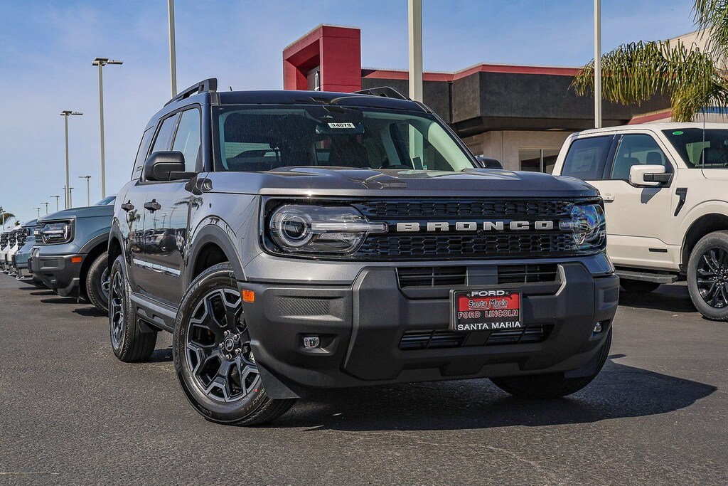 New Price! Carbonized Gray Metallic 2026 Ford Bronco Sport Outer Banks 4WD 8-Speed Automatic 1.5L EcoBoost 25/30 City/Highway MPG 4-Wheel Disc Brakes, 6 Speakers, ABS brakes, Air Conditioning, Alloy wheels, AM/FM radio: SiriusXM with 360L, AM/FM Stereo, Apple CarPlay/Android Auto, Auto High-beam Headlights, Auto-dimming Rear-View mirror, Automatic temperature control, Brake assist, Compass, Delay-off headlights, Driver door bin, Driver vanity mirror, Dual front impact airbags, Dual front side impact airbags, Electronic Stability Control, Emergency communication system: SYNC 4 911 Assist, Exterior Parking Camera Rear, Ford Connectivity Package (1-Year Included), Four wheel independent suspension, Front anti-roll bar, Front Bucket Seats, Front Center Armrest, Front Driver/Passenger Seat Back Map Pockets, Front dual zone A/C, Front fog lights, Front reading lights, Fully automatic headlights, Heated door mirrors, Heated front seats, Heated steering wheel, Illuminated entry, Internet access capable: 5G Modem - Ford Connectivity Package, Knee airbag, Low tire pressure warning, Memory seat, Occupant sensing airbag, Outside temperature display, Overhead airbag, Overhead console, Panic alarm, Passenger door bin, Passenger vanity mirror, Power door mirrors, Power driver seat, Power passenger seat, Power steering, Power windows, Radio data system, Rear anti-roll bar, Rear Parking Sensors, Rear reading lights, Rear seat center armrest, Rear window defroster, Rear window wiper, Remote keyless entry, Security system, SiriusXM with 360L, Speed control, Speed-sensing steering, Speed-Sensitive Wipers, Split folding rear seat, Steering wheel mounted audio controls, SYNC 4 with Enhanced Voice Recognition, Tachometer, Telescoping steering wheel, Tilt steering wheel, Traction control, Trip computer, Variably intermittent wipers, Wheels: 18" Ebony Black.