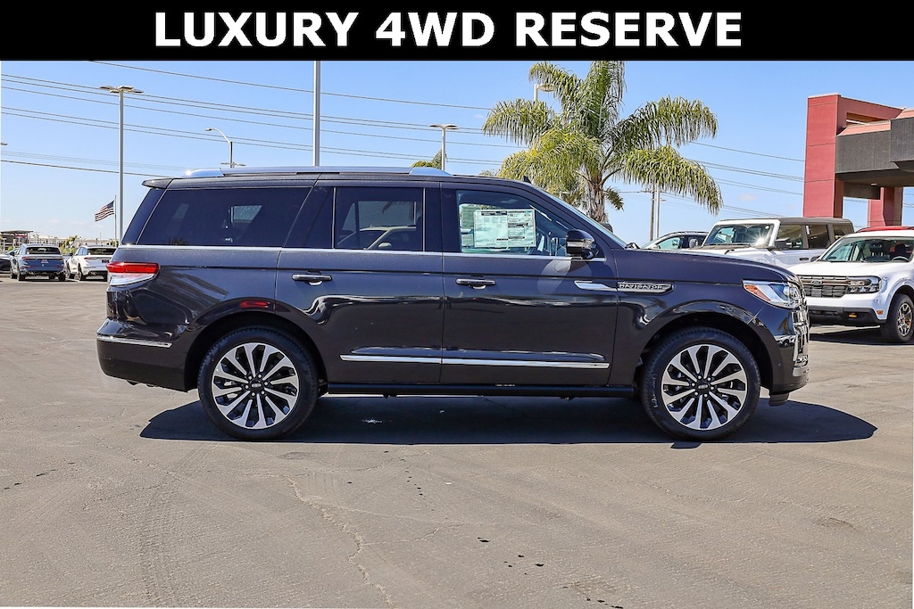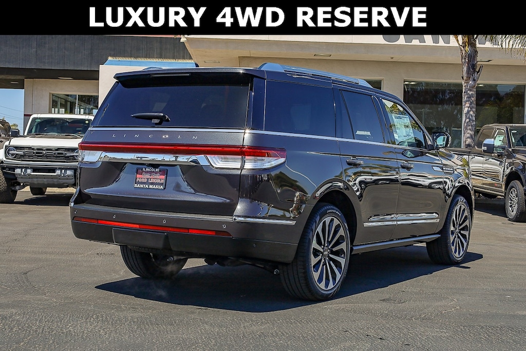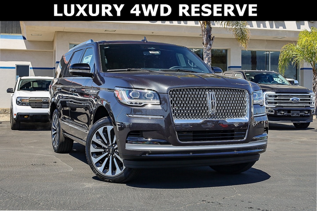 Starlight Gray Metallic Premium Colorant 2024 Lincoln Navigator Reserve 4WD 10-Speed Automatic V6 4WD, Black Onyx Leather, 14 Speakers, 3.73 Axle Ratio, 3rd row seats: split-bench, 4-Wheel Disc Brakes, ABS brakes, Adaptive suspension, Adjustable pedals, Air Conditioning, Alloy wheels, AM/FM radio: SiriusXM with 360L, Apple CarPlay/Android Auto, Audio memory, Auto High-beam Headlights, Auto Start-Stop Technology, Auto tilt-away steering wheel, Auto-dimming door mirrors, Auto-dimming Rear-View mirror, Auto-leveling suspension, Automatic temperature control, Bodyside moldings, Brake assist, Bumpers: body-color, Compass, Delay-off headlights, Driver door bin, Driver vanity mirror, Driver's Seat Mounted Armrest, Dual front impact airbags, Dual front side impact airbags, Electronic Stability Control, Emergency communication system: 911 Assist, Exterior Parking Camera Rear, Four wheel independent suspension, Front anti-roll bar, Front Bucket Seats, Front dual zone A/C, Front fog lights, Front reading lights, Fully automatic headlights, Garage door transmitter, Genuine wood dashboard insert, Genuine wood door panel insert, Head restraints memory, Heads-Up Display, Heated door mirrors, Heated front seats, Heated rear seats, Heated steering wheel, HVAC memory, Illuminated entry, Lane Departure Warning System, Leather steering wheel, Low tire pressure warning, Memory seat, Navigation System, Occupant sensing airbag, Outside temperature display, Overhead airbag, Overhead console, Panic alarm, Passenger door bin, Passenger seat mounted armrest, Passenger vanity mirror, Pedal memory, Power adjustable rear head restraints, Power door mirrors, Power driver seat, Power Liftgate, Power moonroof: Panoramic Vista Roof, Power passenger seat, Power steering, Power windows, Prem Lthr Auto Htd/Ventiltd Perfect Position Seats, Radio data system, Radio: Revel Audio System w/Satelllite/AM/FM/HD, Rain sensing wipers, Rear air conditioning, Rear anti-roll bar, Rear audio controls, Rear reading lights, Rear window defroster, Rear window wiper, Reclining 3rd row seat, Remote keyless entry, Security system, SiriusXM w/360L, Speed control, Speed-sensing steering, Speed-Sensitive Wipers, Split folding rear seat, Spoiler, Steering wheel memory, Steering wheel mounted audio controls, SYNC 4 Communications & Entertainment System, Tachometer, Telescoping steering wheel, Tilt steering wheel, Traction control, Trip computer, Turn signal indicator mirrors, Variably intermittent wipers, Ventilated front seats, Ventilated rear seats, Voice-Activated Touchscreen Navigation System, Wheels: 22" Bright Machined Aluminum, 4WD, Black Onyx Leather.