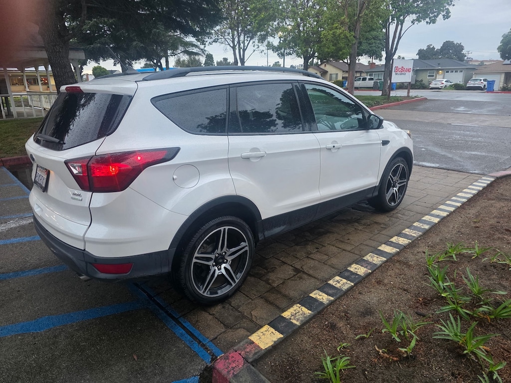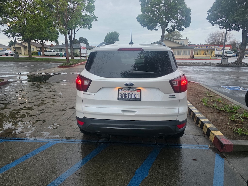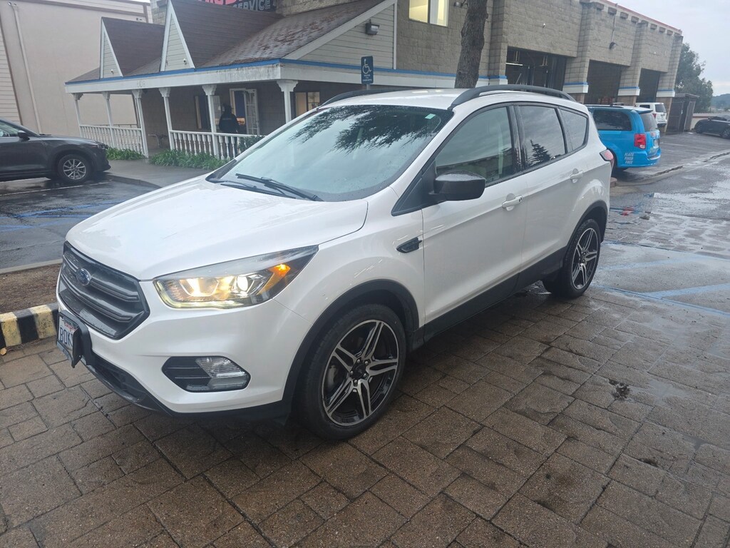 3.21 Axle Ratio, 4-Wheel Disc Brakes, 6 Speakers, ABS brakes, Air Conditioning, Alloy wheels, AM/FM radio: SiriusXM, AppLink/Apple CarPlay and Android Auto, Automatic temperature control, Black Beltline Molding, Brake assist, Bumpers: body-color, Compass, Delay-off headlights, Driver door bin, Driver vanity mirror, Dual front impact airbags, Dual front side impact airbags, Electronic Stability Control, Emergency communication system: SYNC 3 911 Assist, Equipment Group 300A, Exterior Parking Camera Rear, FordPass Connect, Four wheel independent suspension, Front & Rear Magnetic-Painted Skid Plates, Front anti-roll bar, Front Bucket Seats, Front Center Armrest, Front dual zone A/C, Front fog lights, Front reading lights, Front/Rear Floor Mats w/Embroidered Logo, Fully automatic headlights, Heated ActiveX-Trimmed Front Bucket Seats, Heated door mirrors, Heated front seats, Illuminated entry, Knee airbag, Leather Shift Knob, Low tire pressure warning, Magnetic-Painted Sideview Mirror Caps, Magnetic-Painted Upper Grille Bars & Plinth, Occupant sensing airbag, Outside temperature display, Overhead airbag, Overhead console, Panic alarm, Passenger door bin, Passenger vanity mirror, Power door mirrors, Power driver seat, Power Liftgate, Power steering, Power windows, Radio data system, Radio: AM/FM Stereo w/MP3 Capable, Rear anti-roll bar, Rear Parking Sensors, Rear seat center armrest, Rear window defroster, Rear window wiper, Remote keyless entry, Roof rack: rails only, Security system, SEL Sport Appearance Package, Speed control, Speed-sensing steering, Split folding rear seat, Steering wheel mounted audio controls, SYNC 3 Communications & Entertainment System, Tachometer, Taillamps w/Black Bezel, Telescoping steering wheel, Tilt steering wheel, Traction control, Trip computer, Two-Tone Door Trim Panel, Variably intermittent wipers, Wheels: 17" Sparkle Silver-Painted Aluminum, Wheels: 19" Aluminum w/Black Painted Pockets. White Platinum 2019 Ford Escape SEL FWD 6-Speed Automatic 1.5L EcoBoost