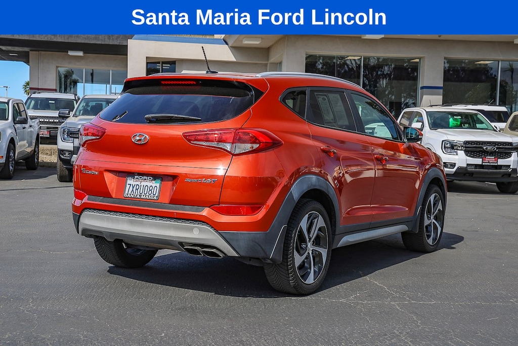 19" Alloy Wheels, 4-Wheel Disc Brakes, 6 Speakers, ABS brakes, Air Conditioning, Alloy wheels, AM/FM radio: SiriusXM, AM/FM/CD/MP3 Audio System, Axle Ratio: 3.579, Brake assist, Bumpers: body-color, Cargo Net, Cargo Package, Cargo Tray, Carpeted Floor Mats, CD player, Delay-off headlights, Driver door bin, Driver vanity mirror, Dual front impact airbags, Dual front side impact airbags, Electronic Stability Control, Exterior Parking Camera Rear, First Aid Kit, Four wheel independent suspension, Front anti-roll bar, Front Bucket Seats, Front Center Armrest, Front fog lights, Front reading lights, Fully automatic headlights, Heated door mirrors, Heated Front Bucket Seats w/Power Driver's Seat, Heated front seats, Illuminated entry, Leather Shift Knob, Low tire pressure warning, Mudguards, Occupant sensing airbag, Option Group 01, Outside temperature display, Overhead airbag, Overhead console, Panic alarm, Passenger door bin, Passenger vanity mirror, Power door mirrors, Power driver seat, Power Liftgate, Power steering, Power windows, Rear anti-roll bar, Rear Bumper Applique, Rear seat center armrest, Rear window defroster, Rear window wiper, Remote keyless entry, Roof rack: rails only, Security system, Speed control, Speed-sensing steering, Split folding rear seat, Spoiler, Steering wheel mounted audio controls, Tachometer, Telescoping steering wheel, Tilt steering wheel, Traction control, Trip computer, Turn signal indicator mirrors, Variably intermittent wipers, YES Essentials Cloth Seat Trim. Sedona Sunset 2017 Hyundai Tucson Sport FWD 7-Speed Automatic 1.6L I4 DGI Turbocharged DOHC 16V ULEV II 175hp