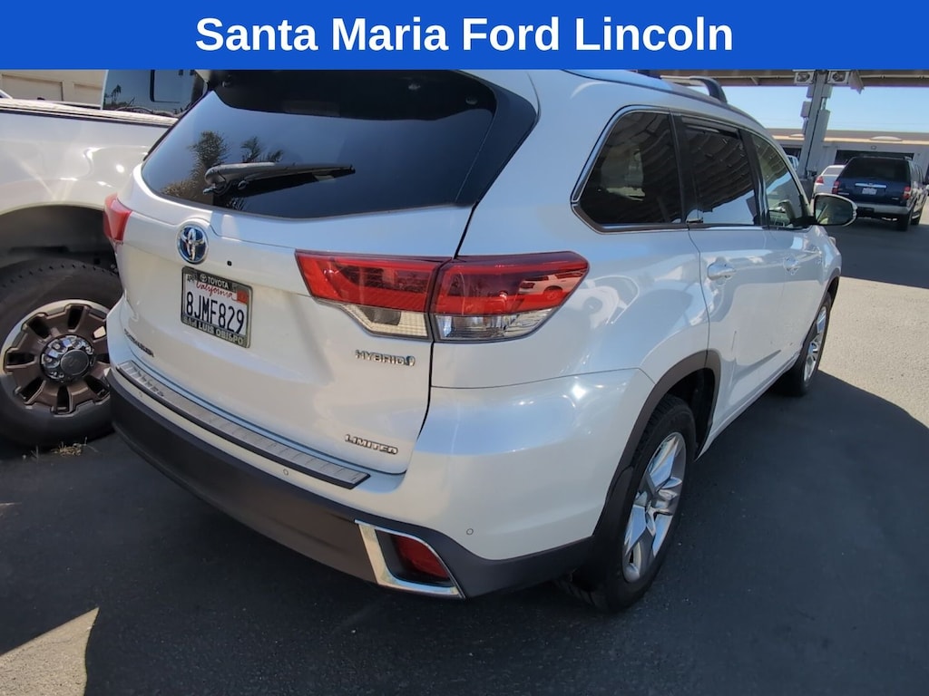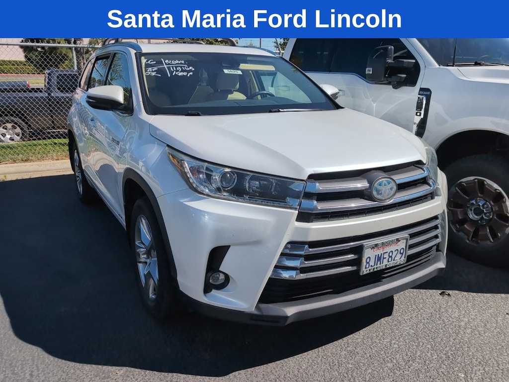 All of our Pre-Owned vehicles are subject to a 100 point inspection to ensure safety and reliability. 3.5L V6 DOHC 24V, 12 Speakers, 3.542 Axle Ratio, 3rd row seats: split-bench, 4-Wheel Disc Brakes, ABS brakes, Air Conditioning, Alloy wheels, AM/FM radio: SiriusXM, Auto High-beam Headlights, Auto-dimming Rear-View mirror, Automatic temperature control, Brake assist, Bumpers: body-color, CD player, Delay-off headlights, Driver door bin, Driver vanity mirror, Dual front impact airbags, Dual front side impact airbags, Electronic Stability Control, Exterior Parking Camera Rear, Four wheel independent suspension, Front anti-roll bar, Front Bucket Seats, Front Center Armrest, Front dual zone A/C, Front fog lights, Front reading lights, Fully automatic headlights, Garage door transmitter: HomeLink, Heated door mirrors, Heated front seats, Heated/Ventilated Front Bucket Seats, Illuminated entry, Knee airbag, Leather Shift Knob, Low tire pressure warning, Memory seat, Navigation System, Occupant sensing airbag, Outside temperature display, Overhead airbag, Overhead console, Panic alarm, Passenger door bin, Passenger vanity mirror, Perforated Leather Seat Trim, Power door mirrors, Power driver seat, Power Liftgate, Power moonroof, Power passenger seat, Power steering, Power windows, Radio: Entune Premium JBL Audio w/Nav & App Suite, Rear air conditioning, Rear anti-roll bar, Rear reading lights, Rear window defroster, Rear window wiper, Reclining 3rd row seat, Remote keyless entry, Roof rack: rails only, Security system, Speed control, Speed-sensing steering, Split folding rear seat, Spoiler, Steering wheel mounted audio controls, Telescoping steering wheel, Tilt steering wheel, Traction control, Trip computer, Turn signal indicator mirrors, Variably intermittent wipers, Ventilated front seats, 3.5L V6 DOHC 24V. Blizzard Pearl 2019 Toyota Highlander Hybrid Limited AWD eCVT 3.5L V6 DOHC 24V Recent Arrival! 29/27 City/Highway MPG Awards: * 2019 KBB.com 12 Best Family Cars * 2019 KBB.com Best Resale Value Awards * 2019 KBB.com Brand Image Awards When was the last time you used the word 'love' to describe how you feel about your car? At Santa Maria Ford, we hear our customers say it all the time, and for good reason. Serving drivers from Paso Robles, Santa Barbara, and Pismo Beach, we offer a wide range of new and used offerings from Ford.
